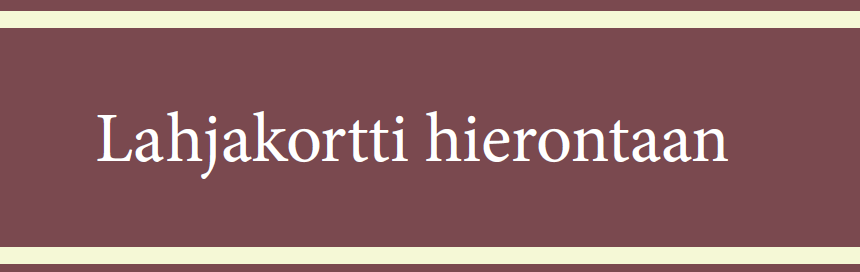 Lahjo lähimmäistäsi tai ilahduta ystävääsi lahjakortilla hierontaan.